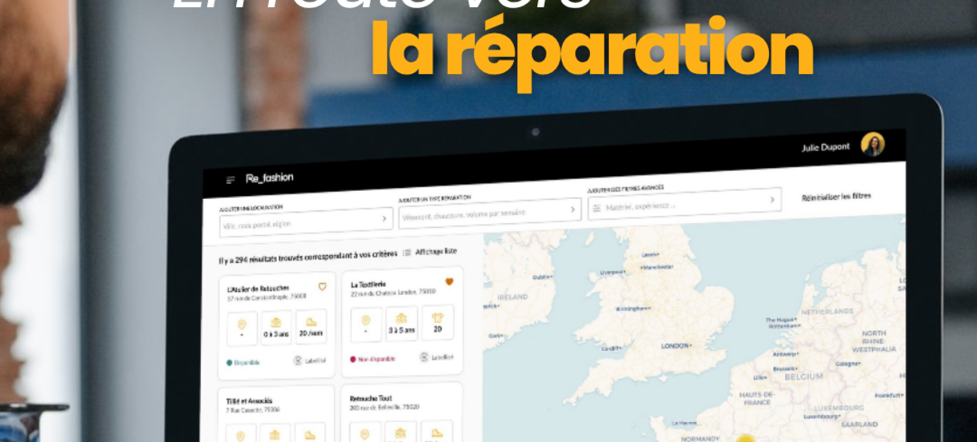 Côté marques, l’usage est tout aussi simple. Une fois inscrits, ils peuvent parcourir une carte interactive des réparateurs et, affiner leur recherche grâce des filtres précis.