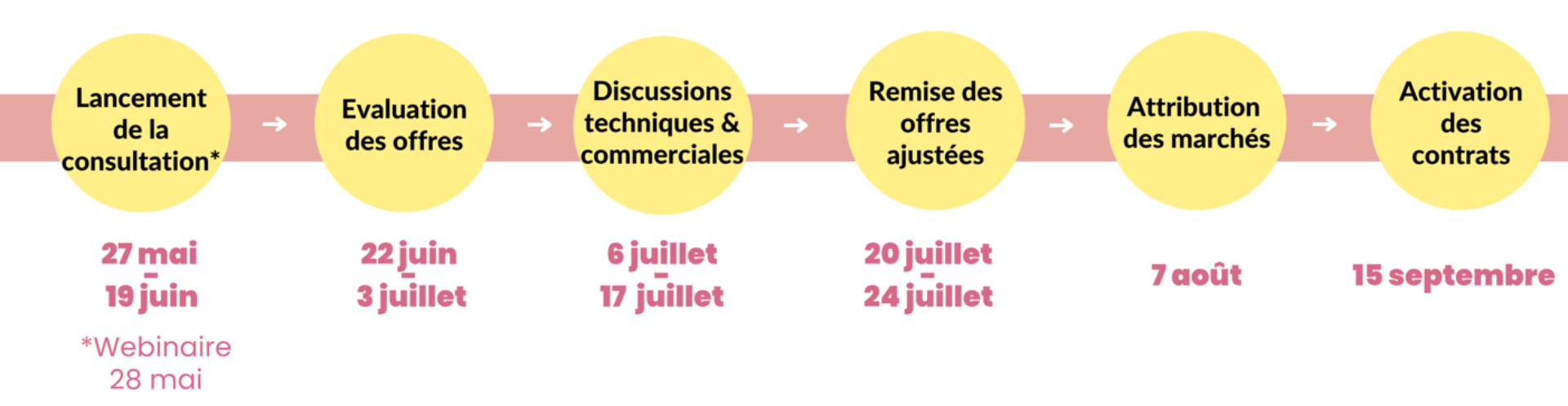 - Durée des contrats : Période ferme du 15 septembre 2026 au 31 décembre 2028 renouvellement possible 2 fois pour 1 an supplémentaire.
