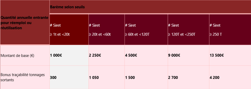 Seules les structures ayant un N° Siret et plus d'une tonne de TLC entrants pour réemploi sont éligibles au soutien.