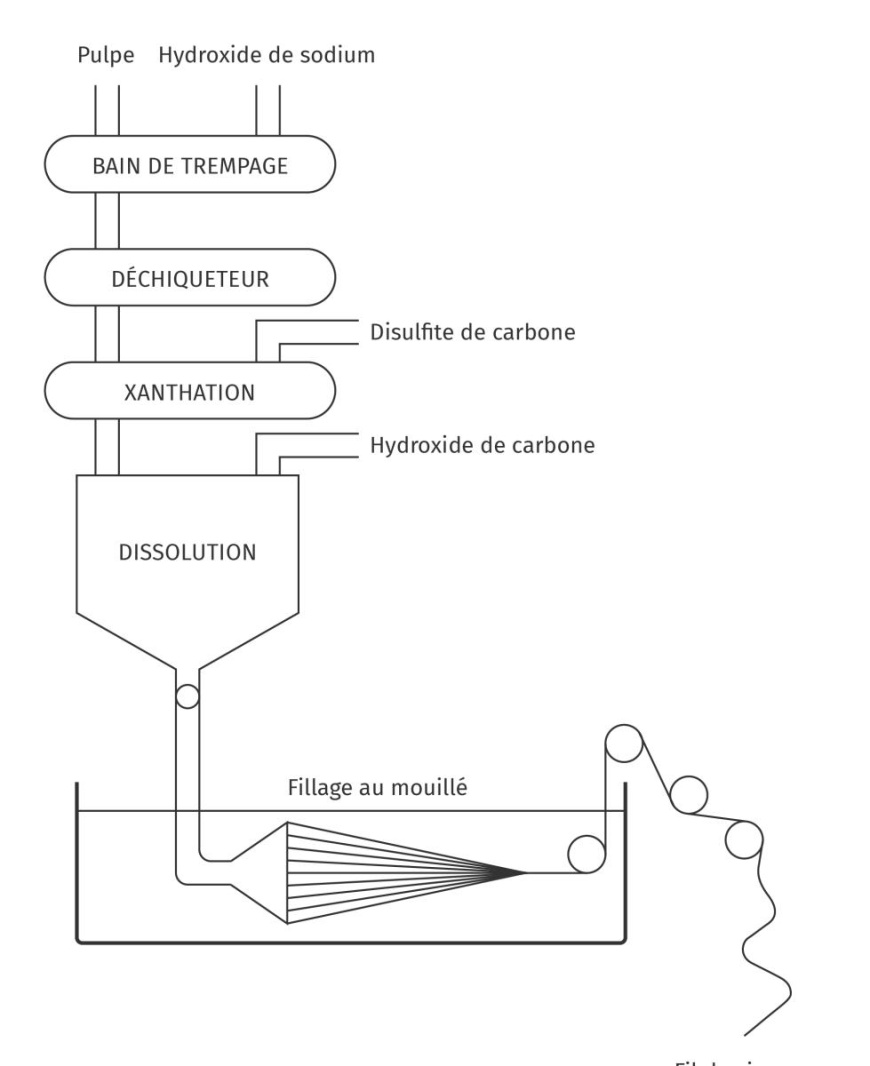 Ce traitement modifie la structure de la fibre pour la dissoudre dans un solvant et la rendre filable.